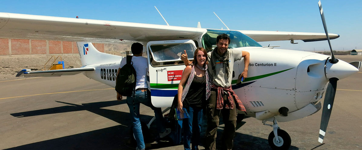 Lo recogeremos en su hotel en Nazca o en la estación de bus. Será transportado al Aeropuerto María Reiche, a 10 minutos de distancia del centro de Nazca. En el aeropuerto lo ayudaremos con los procedimientos de registro y entrada, tales como el pago de su impuesto de aeropuerto, pasar por seguridad y el pesaje. Luego podrá ver un breve documental acerca del descubrimiento de las Líneas de Nazca. Después, lo asistiremos en su entrada al aeroplano Cessna 206.